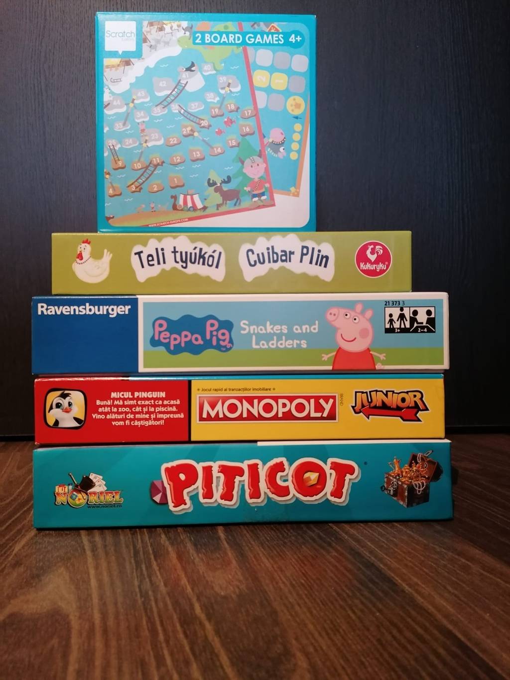 Am cumpărat primul joc de societate, board game cum ar veni pe limba noastră :), anul trecut, în aprilie. Și anume Piticot. Ionas avea atunci abia 2 ani și 3 luni, așa că vreme de ceva luni, a stat în dulap jocul. Pentru că pandemie, mult stat acasă, prin toamnă l-am scos din dulap. La început a fost curios să vadă ce este, a aruncat cu zarul, dar nu avea răbdare deloc deloc să se joace, ba mai mult, dacă Doamne ferește! era cineva în fața lui, se lăsa cu scandal, zar aruncat cât colo și toată drama din lume se pogora în trupușorul lui.