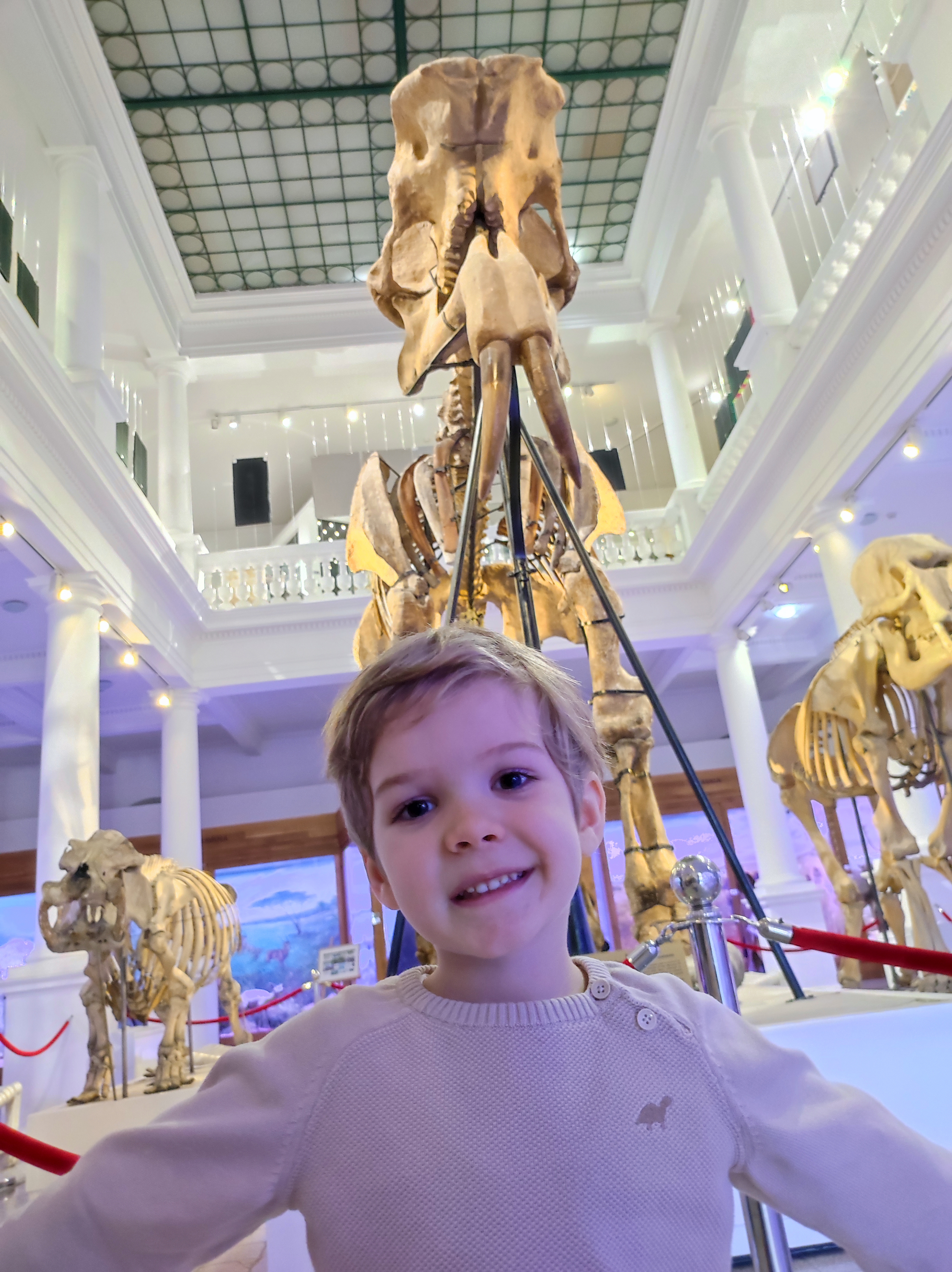 Sâmbătă, am mers la muzeul Antipa. Deși mai fusesem cu Ionas când era ceva mai mic, acum altfel a admirat creaturile de pe acolo. Pe unele le recunoștea din cărțile de pe acasă, sau de pe Harta Animalelor cu sunete pe care o are, sau din ce a mai văzut pe la televizor. Era foarte mândru când recunoștea o specie. Desigur, foarte impresionant a fost scheletul gigant, că doar ce ne uitasem pe o carte cu dinozauri cu o seară în urmă. Apoi, să ne simțim puțin în city break, ne-am oprit la 5ensi în Piața Victoriei să mâncăm, un loc unde mereu mâncarea este foarte bună și personalul este mereu atent. Hai că ne-am simțit puțin turiști până la urmă.