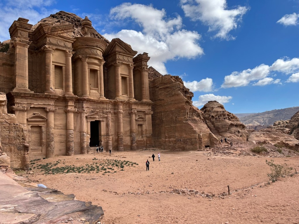 Ziua a doua a început în forță la 7 dimineața, încât aveam in plan sa pornim spre Petra. Am inceput traseul de la Little Petra, am luat un “taxi” care ne-a lăsat la poalele muntelui, iar de acolo am pornit urcarea, traseul Ad Deir, care are aproximativ 9 km. După ce ne-am minunat de 88276344 ori de superbul peisaj, am ajuns sus, la mănăstire, apoi am continuat drumul spre Trezorerie, morminte și toate cele. Dacă până atunci mă minunasem de ce a putut să lucreze Mama Natură, la situl arheologic nu am putut sa nu mă uimesc constant de îndârjirea cu care mâna omului a lucrat, a sculptat, a dăltuit, la stadiul de perfecțiune, coloane înalte de zeci de metri, aranjate, aliniate, astfel încât să dăinuiască mii și mii de ani.