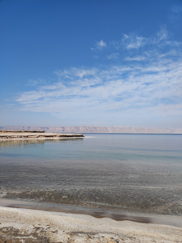 Ultima zi a fost cu mare și cu soare. De fapt, am bifat și Marea Moartă și Marea Roșie in aceeași zi. Mare păcat că în toată zona aceea între Petra și Amman, nu e nimic amenajat să te poți bucura de experiența deosebită a unei băi in Marea Moartă. Din fericire, acest aspect nu i-a oprit pe băieți, chiar dacă a fost nevoie de a mai opri mașina la 10 km mai departe, unde au făcut o tentativă de duș, să dea sarea jos. Altfel, peisajul minunat, nu mă mai săturam să admir sarea in bucate strălucind în soare la malul mării.