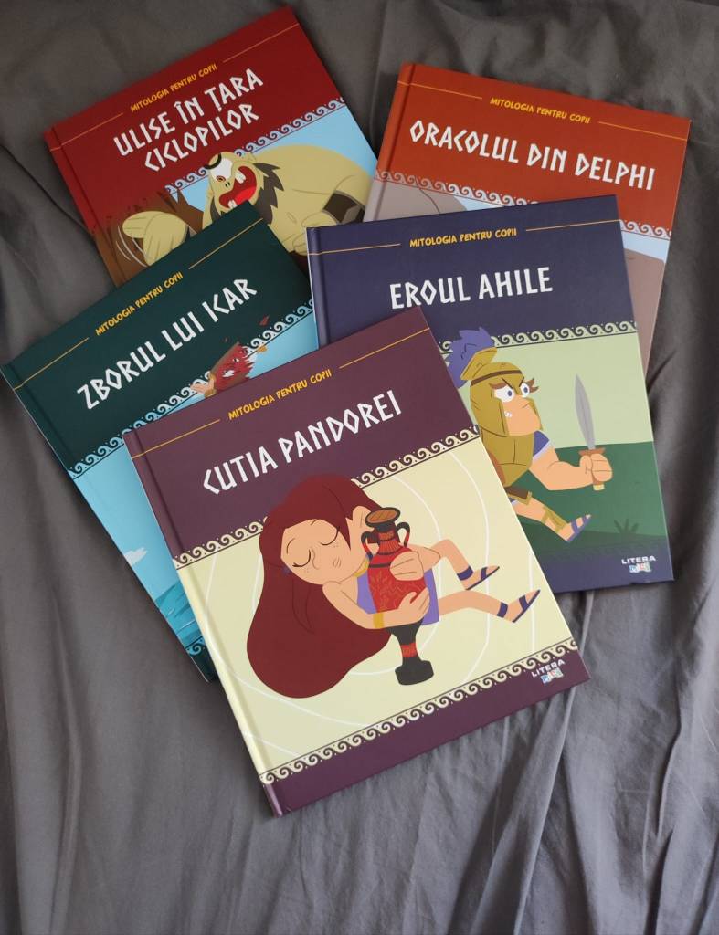 Mă bucură nespus curiozitatea lui, dar mărturisesc că uneori nu fac față tuturor întrebărilor, așa că apelez cu încredere la cărți. Și pentru că tot am pomenit de mituri și legende, am ales să comand ceva titluri de la Editura Litera. Colecția Mitologia mai precis. Astfel, nu numai copilul a fost mulțumit să afle despre fel și fel de personaje din mitologia greacă și aventurile lor, dar și eu am mai învățat una alta. De exemplu, de ce fix călcâiul lui Ahile e partea vulnerabilă și de unde vine cutia Pandorei de fapt.