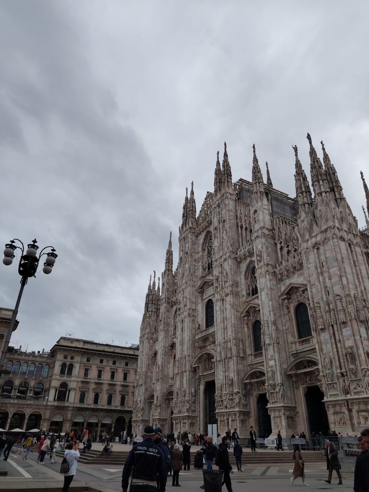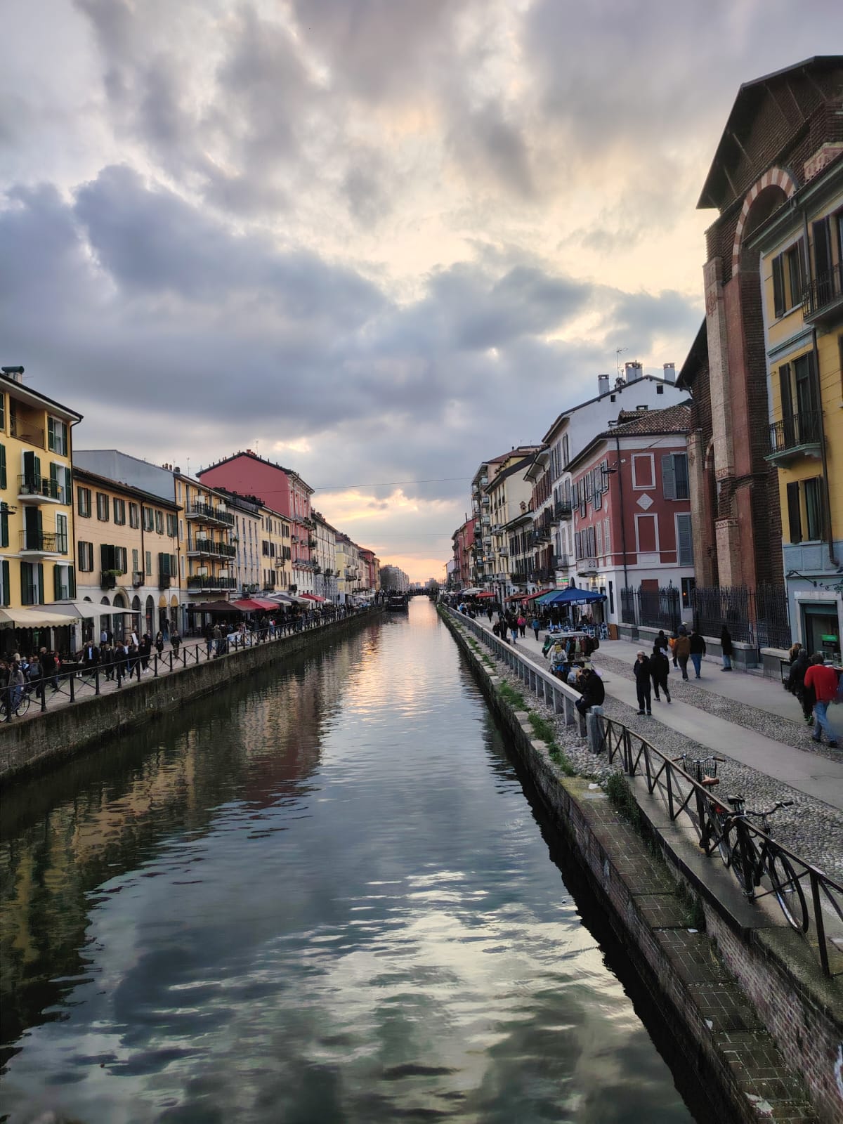 Am avut tentativa de a participa la un walking tour ghidat în prima zi, dar am avut și ghinionul să dăm de un tur istoric, cu foooarte mulți ani menționați, multe personaje diverse, iar noi sau majoritatea dintre noi nu aveam disponibilitatea să ascultăm atât de multe detalii. A fost, într-adevăr, interesant să aflu detalii despre cum s-a construit Duomul și de ce a fost ales stilul gotic deși nu mai era neapărat la modă. Precum și să aflu că în Milano a fost deschis primul spital modern, cu îngrijire gratuită, cu paturi individuale, cu sistem de răcorire și încălzire. Dar foamea își cerea drepturile, așa că am ajuns la Maia Bistrot unde am mâncat ceva rapid și am păstrat loc pentru ceva dulce de la Panettoni Giovanni Cova & C unde am savurat un tiramisu absolut fantastic. Apoi iar mulți pași pe jos, apoi iar o oprire la o terasă. Plimbare prin galerii, un selfie la Duomo și metroul spre cartierul Navigli. Am mers special pe canal la ora apusului, pentru că lumina acolo era absolut superbă. Apa reflecta ultimele raze de soare, iar casele de o parte și alta a canalului erau inundate de o lumină caldă și blândă. Am sărbătorit sfârșitul aceste zile minunate cu o cină deosebită la Brioschina. Eu am mâncat pentru prima data osso bucco, fetele au comandat un tip de rissoto preparat în roata de brânză, cu trufe, cu vodka, cu ceapa caramelizată, ceva de vis.